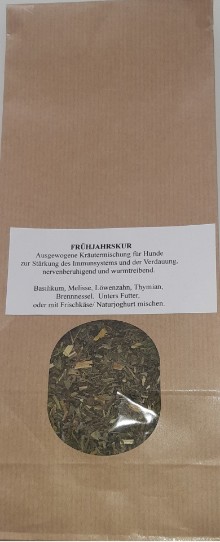 Entweder mit Wasser anrühren oder direkt unter das Futter mischen. Alternativ kann die Kräutermischung auch mit Joghurt oder Frischkäse verrührt und gefüttert werden. Für Hunde die beides nicht annehmen, einen Tee kochen und in kleinen Mengen übers Futter geben.